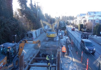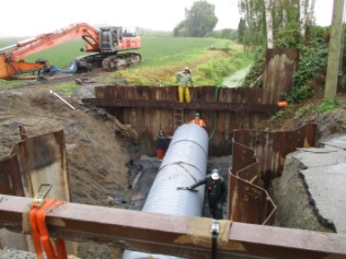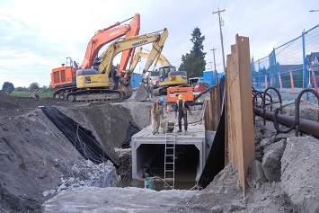Owner: City of DeltaDescription: Replacement of 20m of an existing 1200mm diameter CSP culvert drainage pipe with new 1500mm diameter sanitary pipe complete with new MSE headwalls. The work required sheet piling and dewatering to insulate the working area of ditch and ground water in an environmental sensitive area.