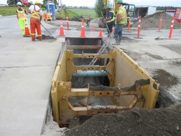 Description: Replacement of a 750mm wood stave storm culvert, running across New Westminster Highway at No. 8 Road, with a 750mm Class 4 reinforced concrete pipe. Work included major intersection traffic management for the duration of the project.
