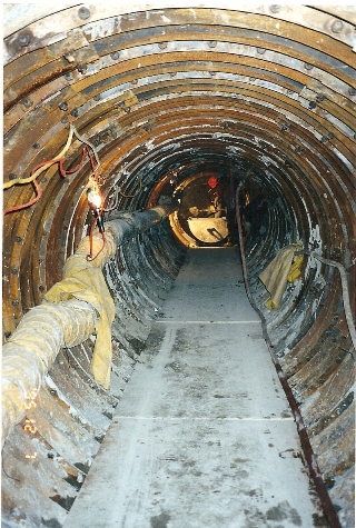 Description: Installation of approximately 1.3km of corrosion resistant sewer pipe and manholes. Installation of 580m of pipe in a special open trench section, involving continuous sheet pile shoring, dewatering, and over-excavating the trench bottom to firm bearing, through a soft peat and silt soil. Construction of a 200m long, 1.6m diameter tunnel, including installation of 900mm diameter PVC sewer pipe and placement of cellular concrete in the annular space between the pipe and the tunnel liner.